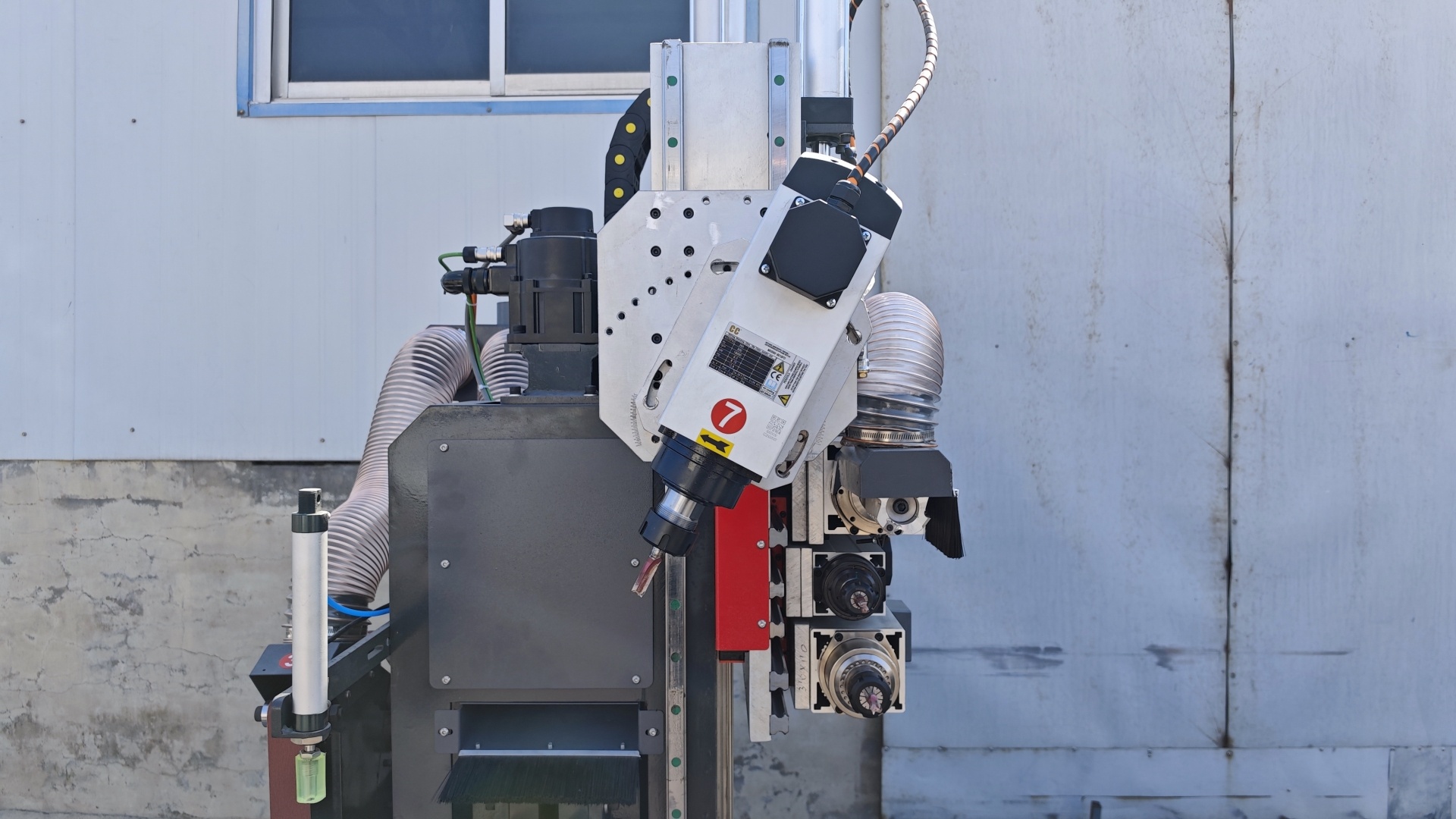 四軸6工序車銑復合加工中心,自動上料、自動打磨、雙刀車木、3個主軸電機(其中1個7.5KW光桿主軸電機帶動螺旋銑刀,另外2個小主軸電機可根據需求安裝不同功能刀具進行加工)。可車圓、銑型、拉槽、打孔、打磨等功能一次成型,適用于實木桌椅腿、沙發腿 、床腿、各種實木家具腿、樓梯木欄桿等旋轉木制品的加工。